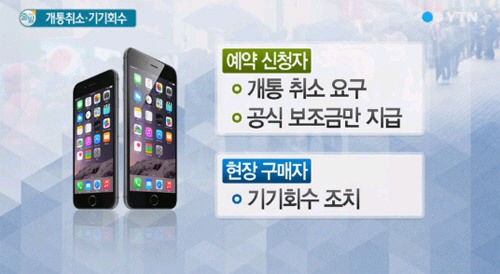 아이폰6 대란을 주도했던 일부 판매점들은 정부의 과징금 부과를 피하기 위해 예약 신청만 하고 아직 기기를 받지 않은 소비자들에게 개통 취소를 요구하거나, 이미 판매한 기기를 회수하고 있는 것으로 알려졌다.