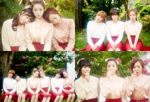 이날 공개된 사진 속 에이핑크는 빨간 스커트와 누드톤의 블라우스를 맞춰 입고 신비로우면서도 청순한 순정만화 여주인공 같은 모습을 선보였다.