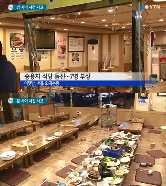 승용차 식당 돌진 7명 부상, "밥먹는데 유리창 와장창"...사고현장 보니?