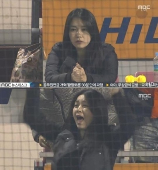 7일 삼성 라이온즈와 넥센 히어로즈의 한국시리즈 3차전 경기가 열린 가운데 야구선수 박한이의 아내 조명진이 경기장에서 화장기 없는 얼굴에 남다른 외모로 남편을 응원하는 모습이 포착됐다.