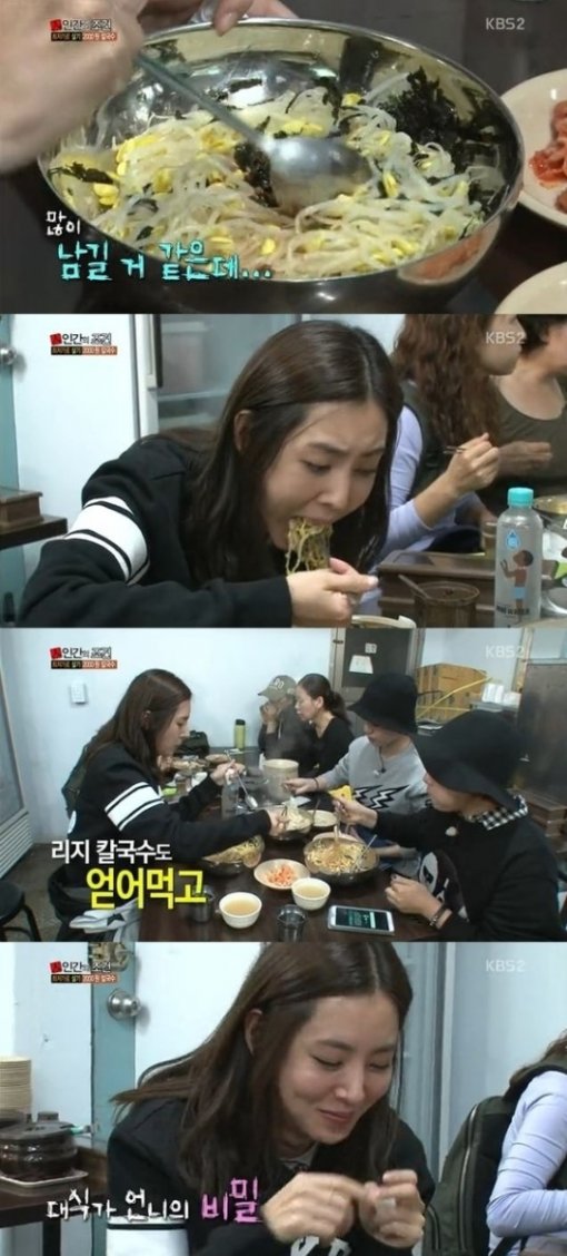 2500원짜리 콩나물 비빔밥을 시킨 한채아는 "양이 진짜 많다"며 걱정스러운 표정을 지었다. 하지만 눈 깜짝할 사이에 그릇을 비운 한채아는 리지가 시킨 칼국수까지 얻어먹으며 놀라운 식성을 뽐냈다.