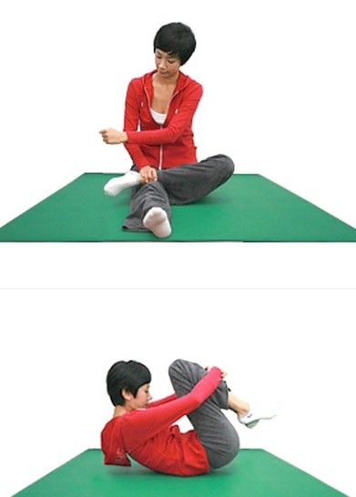 또 무릎을 굽혀 두 팔로 감싸 안고 목은 앞으로 숙인 뒤 뒤로 넘어졌다 일어나는 방식으로 허리까지 자극을 주고, 등까지 바닥에 닿도록 구르기를 한다.