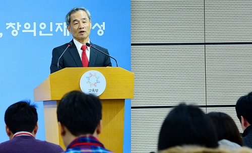 | ▲ 13일 세종시 정부세종청사 교육부 공용브리핑룸에서 양호환 2015학년도 대학수학능력시험 출제위원장이 올해 수능 문제 출제방향 등에 대해 설명하고 있다. /사진=뉴시스 | ||