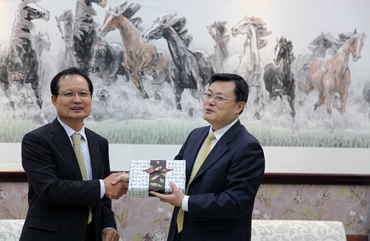 | ▲ 지난 11일 중국 산둥대학에서 진행된 '교류협약 체결식'에서 송희영 건국대 총장(왼쪽)과 장룽 산둥대 총장이 기념사진을 촬영하고 있다. | ||