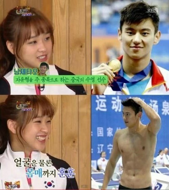 이날 방송에서 손연재는 '남자 선수들 중에 맘에 드는 사람이 없냐'는 질문에 "중국 수영 선수 닝제타오가 괜찮은 것 같다"며 "최근 인천 아시안 게임에서 닝제타오 선수를 봤는데 잘생겼더라"고 사심을 고백했다.