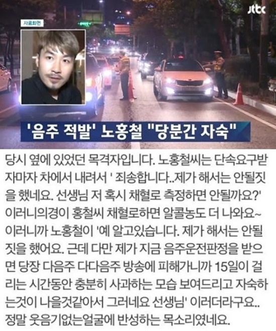 앞서 노홍철은 당초 알려진 것과는 달리 경찰의 음주 측정을 거부하다 채혈을 당했다는 논란에 휘말렸다.