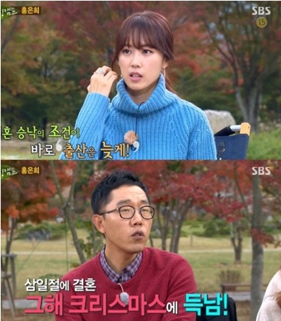 이날 방송에서 홍은희는 맏이 출산 시기와 속도위반과 관련된 속도위반 결혼 의혹에 대해 “많이들 의심하시는데 속도위반이 아니다”라고 말문을 열었다. 이어 “정확하게 허니문 다음달 베이비다”라고 말해 웃음을 자아냈다.