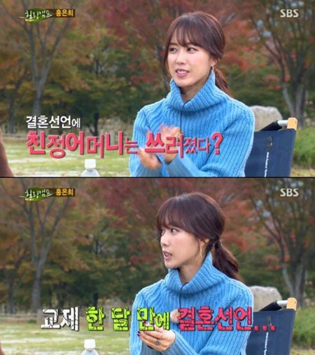 이날 방송에서 MC 이경규가 "결혼한다고 했을때 친정 어머니가 쓰러지셨다는데"라고 묻자 홍은희는 "정말 쓰러지신 건 아니고 머리를 싸매셨다"고 말해 눈길을 끌었다.
