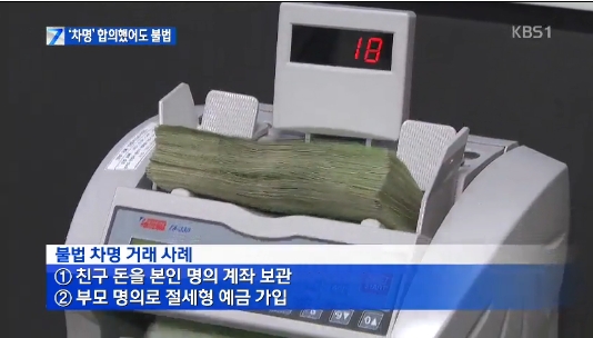 친한 친구의 돈을 내 명의의 계좌에 맡아줬다거나, 세금을 적게 내는 절세형 예금에 가입하기 위해 부모의 명의를 이용해도 모두 불법이다. 금융소득 종합과세를 피하기 위해 가족 명의로 돈을 나눠 넣어두는 것도 허용이 안된다.