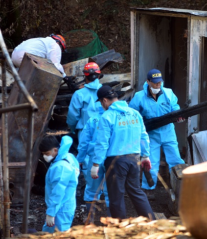 | ▲ 전남 담양군 H펜션에서 발생한 화재로 4명이 숨지고 6명이 부상을 입은 가운데 지난 16일 전남경찰청 국립과학수사연구원 관계자들이 현장조사를 벌이고 있다. /사진=뉴시스 | ||