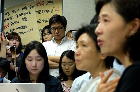 | ▲ 지난 9월16일 서울 용산구 숙명여대 음악대학 교수 연구실에서 재학생 폭언 논란으로 해임 압력을 받고 있는 해당 교수들이 해명을 하고 있다. /사진=뉴시스 | ||