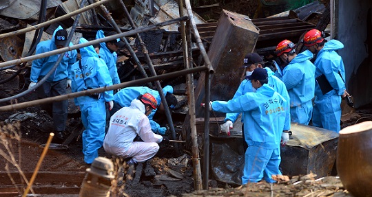 | ▲ 지난 16일 전남경찰청 국립과학수사연구원 관계자들이 전남 담양군 대덕면 H펜션 화재 현장에서 조사를 벌이고 있다. /사진=뉴시스 | ||