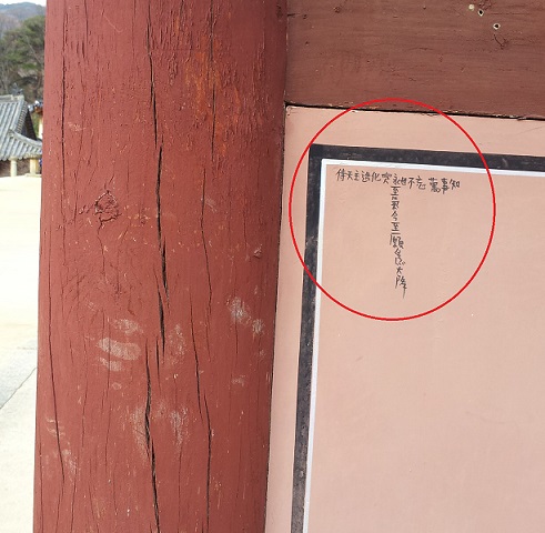 | ▲ 경남 합천 해인사에서 발견된 낙서. /사진=뉴시스 | ||