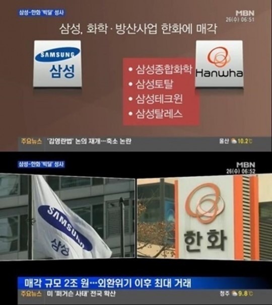 | ▲ 삼성 한화 빅딜/사진=방송화면 캡처 | ||