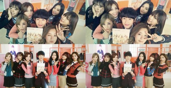 지난 1일 에이핑크 공식 유투브에 공개된 영상에서 에이핑크와 임시완은 스쿨룩스 촬영장에서 만나 서로를 응원하고 있는 모습이다.