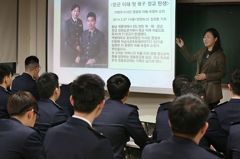 | ▲ 지난달 28일 서울 종로구 상명대에서 이서인 육군본부 부이사관이 강연을 진행하고 있다. | ||