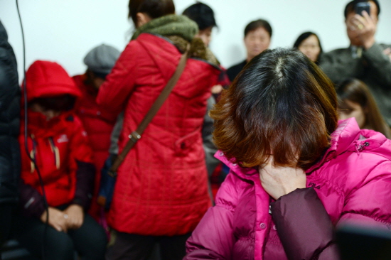 | ▲부산 서구 남부민동 사조산업 부산본부에 마련된 사고대책본부에서 구조상황 설명을 듣고 있던 실종 선원 가족들이 눈물을 흘리고 있다. /뉴시스 | ||