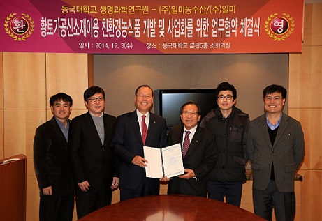 이번 MOU 체결에 따라 동국대 생명과학연구원과 일미농수산은 황토가공신소재, 친환경농산물과 이를 이용한 가공식품의 개발 및 사업화를 공동으로 추진한다.
