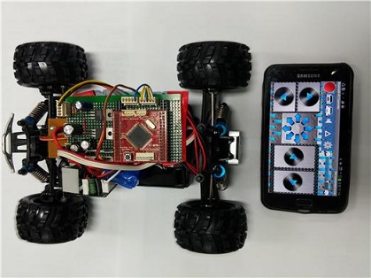 이번에 개발된 ‘스마트카’는 마이크로프로세서를 탑재, 블루투스을 이용해 가속레버로 속도 조절과 방향전환 등 기타 기능들을 조정할 수 있다.