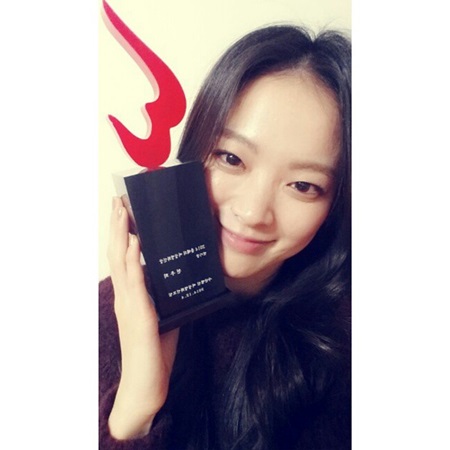 공개된 사진 속에는 트로피를 얼굴애 댄 채 카메라를 향해 미소 짓고 있는 천우희의 모습이 담겼다.