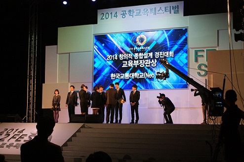 한국교통대학교는 제어계측공학과 학생팀(Neo Drive)이 최근 열린 ‘2014 공학교육 페스티벌’에서 교육부장관상을 수상했다고 5일 밝혔다.