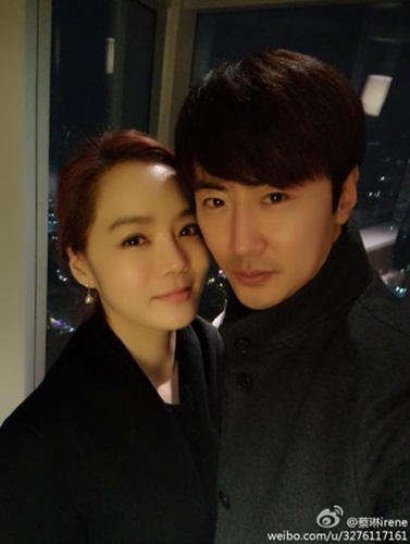 공개한 사진 속에 채림과 가오쯔치는 야경이 보이는 창을 배경으로 얼굴을 가까이 맞대고 카메라를 응시하고 있다.