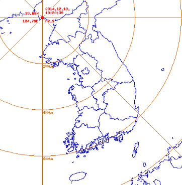 진앙의 위·경도는 북위 39.68도, 동경 124.79도다.