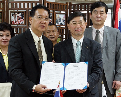 | ▲ 9일 태국 현지에서 진행된 자매결엽협정식에서 구기헌 상명대 총장(오른쪽)과 마타욤 왓 마꿋까삿 중고교 짜랏릿 클리스완 교장이 기념사진을 촬영하고 있다. | ||