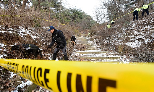 | ▲ 지난 7일 '장기없는 토막시신'이 발견된 경기 수원 팔달산 현장에서 경찰이 수색견을 동원, 수색을 벌이고 있다. /사진=뉴시스 | ||
