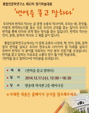 한국방송통신대학교 통합인문학연구소는 서울 종로구 방송대 역사관에서 ‘제12차 정기학술대회’를 17일 개최한다.