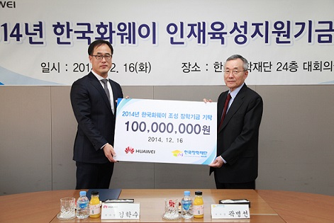한국장학재단은 서울 중구 재단 대회의실에서 한국화웨이와 공학계열 우수 대학생을 지원하기 위한 장학금 기탁식을 16일 가졌다.