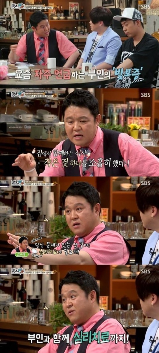 이에 김구라는 "너도 집에서 사고치는 와이프 있으면 일을 열심히 하게 된다"며 "본의 아니게 부채가 생겼다. 내 와이프인데 어떻게 하느냐"고 토로했다.
