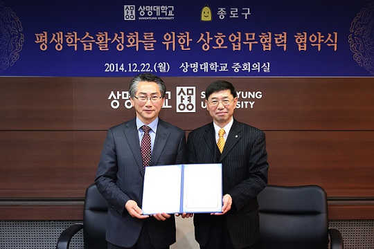 상명대학교는 서울 종로구와 평생학습활성화를 위한 협약(MOU)를 22일 체결했다고 23일 밝혔다.