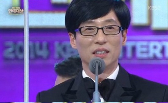 유재석은 지난 27일 방송한 ‘2014 KBS 연예대상’에서 후보 강호동, 김준호, 신동엽, 이경규, 차태현을 제치고 대상을 차지했다.