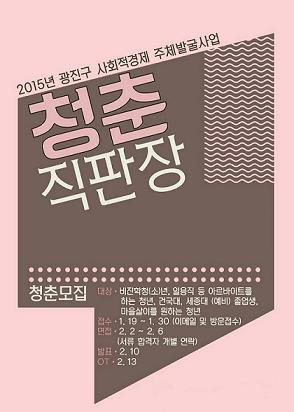 청춘직판장은 사회적 경제 주체 발굴과 육성, 광진 청년사업가 양성을 목적으로 개설된 교육과정으로 서울 광진구 지역 대학생을 대상으로 올해 3월부터 사회적 경제에 관한 기초와 이해 교육, 실무 창업 교육, 인문학 토론 등의 교육을 실시한다.