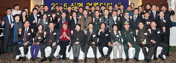 | ▲ 6일 서울 광화문 코리아나호텔에서 진행된 '2015 상명 언론인의 밤' 행사에서 상명대 관계자 등이 기념사진을 촬영하고 있다. | ||