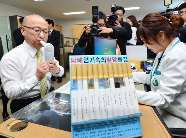 | ▲ 문형표 보건복지부 장관이 지난 8일 세종시 조치원읍 세종보건소 금연클리닉에서 일산화탄소측정기로 일산화탄소를 측정하고 있다. / 사진=뉴시스 | ||
