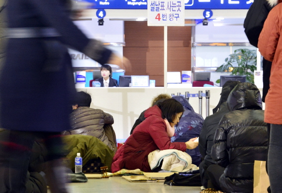 | ▲ 설명절 고향가는 길은 멀고도 험하다. 코레일이 설명절 티켓을 13일 오전 6시 예매하자, 전날밤부터 몰려든 국민들이 티켓판매대앞에서 밤샘하며 고단한 시간을 보내고 있다. | ||