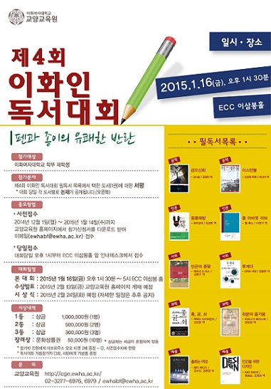 올해로 4회째를 맞은 이번 행사는 이화여대 교양교육원이 선정한 필독서 중 한 권을 선택해 미리 읽고 정해진 장소에 모여 서평을 작성하는 백일장 형식으로 진행된다.