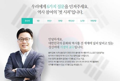 서 교수는 "올해 광복 70주년을 맞아 점차 사라져가는 우리의 역사 인식을 바로 잡고 네티즌들과 함께 즐겁고 유익한 역사 컨텐츠를 만들어 대한민국의 역사 인식을 고취시키고자 했다"고 말했다.