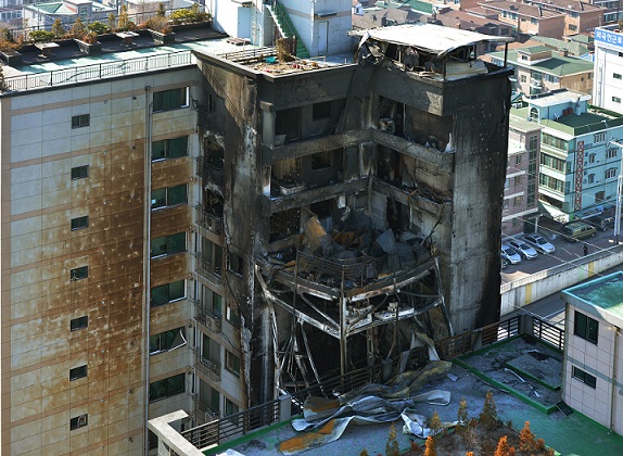 | ▲ 지난 10일 화재사고로 90억원 상당의 재산피해를 낸 경기 의정부시 아파트 화재현장. /사진=뉴시스 | ||