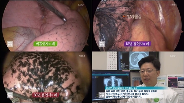 KBS 뉴스9은 이날 리포트에서 흡연자와 비흡연자의 폐 내시경영상을 입수해 비교 분석했다.
