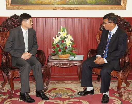 | ▲ 20일 캄보디아를 방문한 구기헌 상명대 총장(왼쪽)이 항 추온 나론 캄보디아 교육부 장관과 대화를 나누고 있다. |