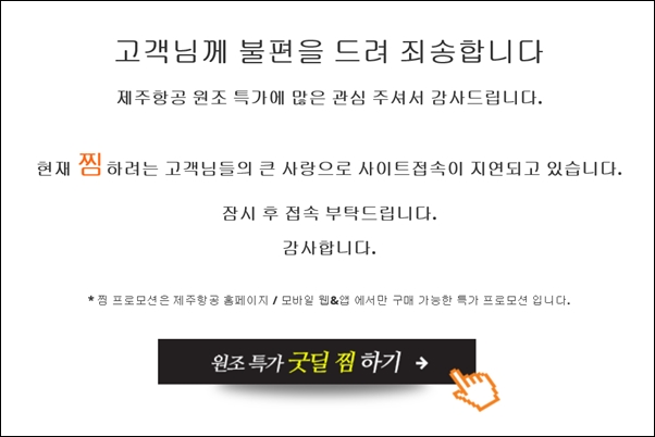 | ▲ 이틀째 접속 불가한 제주항공 홈페이지 | ||