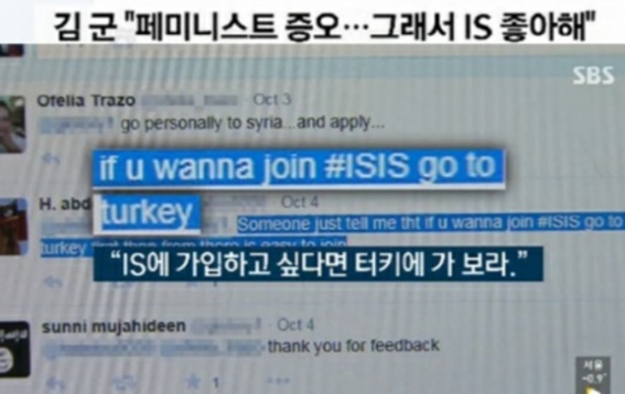 | ▲ IS에 가담하기위해 시리아로 밀입국한 것으로 알려진 김모군은 자신의 트위터에 여성해방론자와 남녀평등론자들에게 강한 적대감을 드러내는 글을 올렸다. /화면캡처 | ||