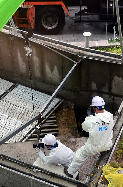 | ▲ 지난해 10월21일 경기 판교 환풍구 추락사고 현장에서 진행된 하중실험에서 국립과학수사연구원 관계자들이 실험 후 사진을 촬영하고 있다. /사진=뉴시스 | ||