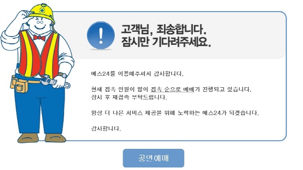 지난 21일 엑소 콘서트 티켓 예매는 예스24를 통해 진행됐다. 오픈 30분 전부터 몰려 결국 예스24 홈페이지 접속이 마비됐다. 이에 엑소 측은 예매를 중단하고 티켓 오픈 일정을 변경한 바 있다.