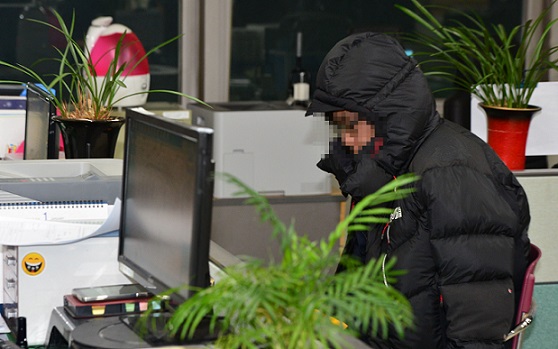 | ▲ 29일 충북 청주 흥덕경찰서에서 일명 '크림빵 뺑소니 사건' 피의자 허모씨가 조사를 받고 있다. /사진=뉴시스 | ||