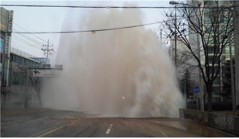 31일 오전 5시 49분께 경기도 평택시 지산동 동부아파트 주변 1번 국도 지하에 묻힌 직경 1미터짜리 대형 수도관이 파열됐다.
