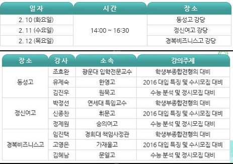 설명회에서는 학부모들이 가장 궁금해 하는 내용을 엄선 △2016학년도 대입 정시 전형 해설 △입학 사정 관이 바라본 학생부 종합전형 평가 △2016년도 대입 수시전형 대비 등이 발표될 예정이다.